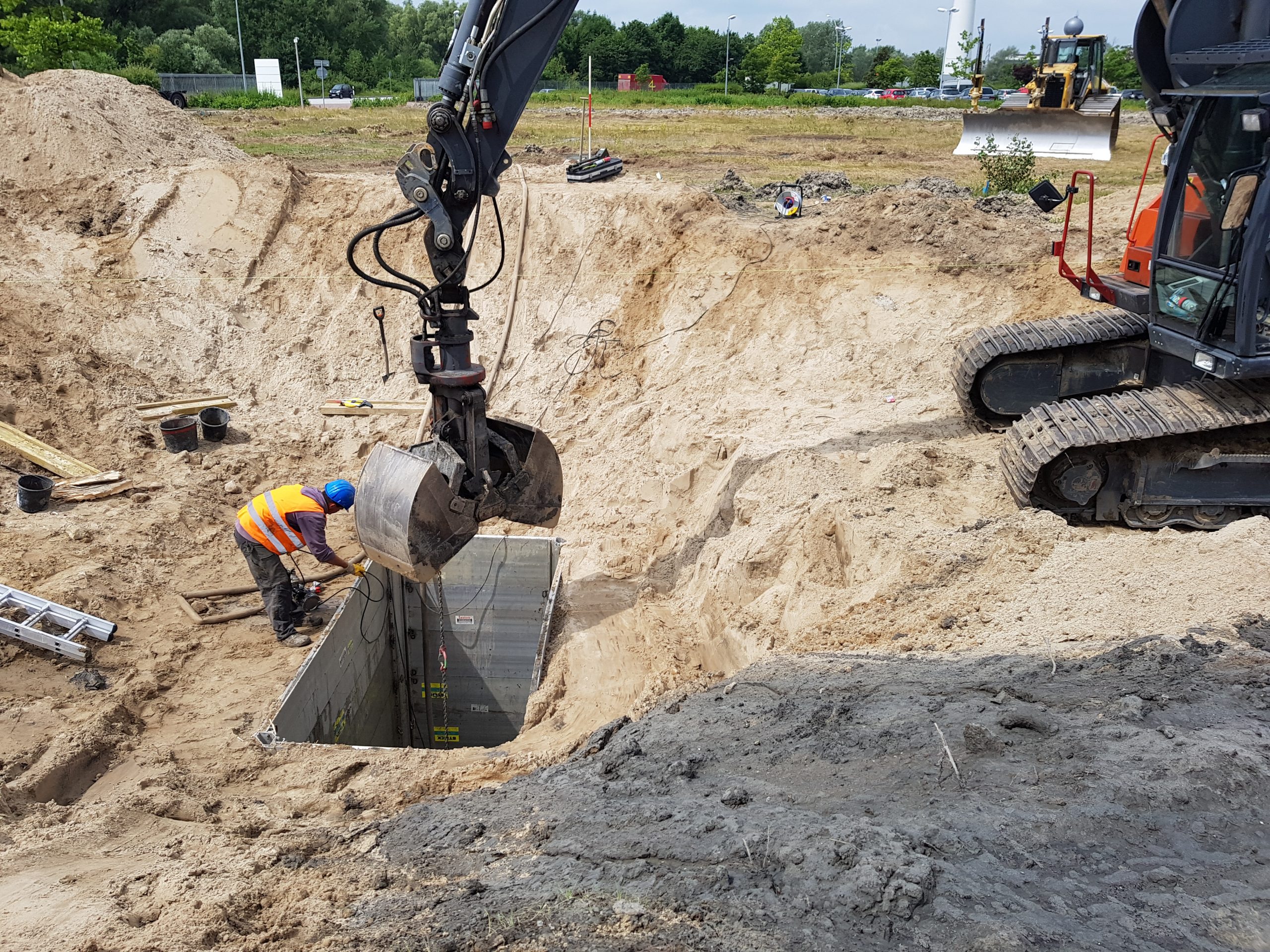 Die Bergung von Anomalien, aus der Oberflächen- und/oder Tiefensondierung, führen wir i.d.R. mit einem Aluminiumverbau in rechteckiger o. runder Form aus. Mit dieser Ausführung können wir Anomalien bis 6m freilegen. Anomalien, welche tieferliegend sind oder einen besondere Verbaustatik wegen der Örtlichkeit verlangen, werden im Schutze eines Großlochbohrgerät, oder mit gepresstem Spundwandverbau geborgen.